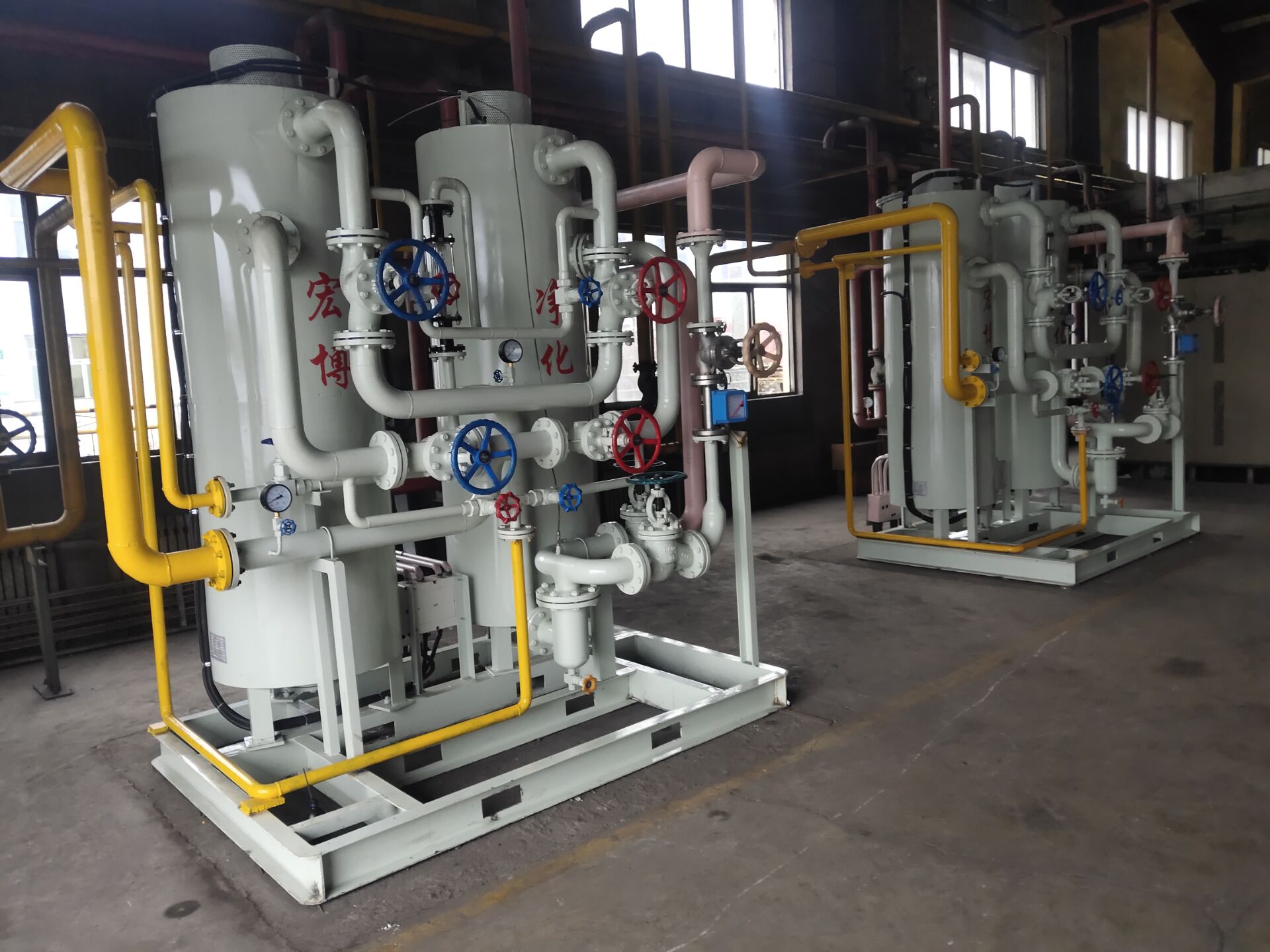 如需純度更高的氣體,氨分解出來的氣體再進入純化裝置除水、除氧,純化裝置中兩個干燥器交換使用,連續(xù)供氣,最后經過濾器,流量顯示送到客戶使用點。